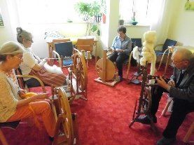 Eine Gruppe Interessierter hat Spaß an diesem alten Handwerk und trifft sich einmal im Monat zum gemeinsamen Spinnen und Klönen. Sehr gern sind Interessierte eingeladen, entweder um einfach zuzuschauen oder sich in irgendeiner Form einzubringen.